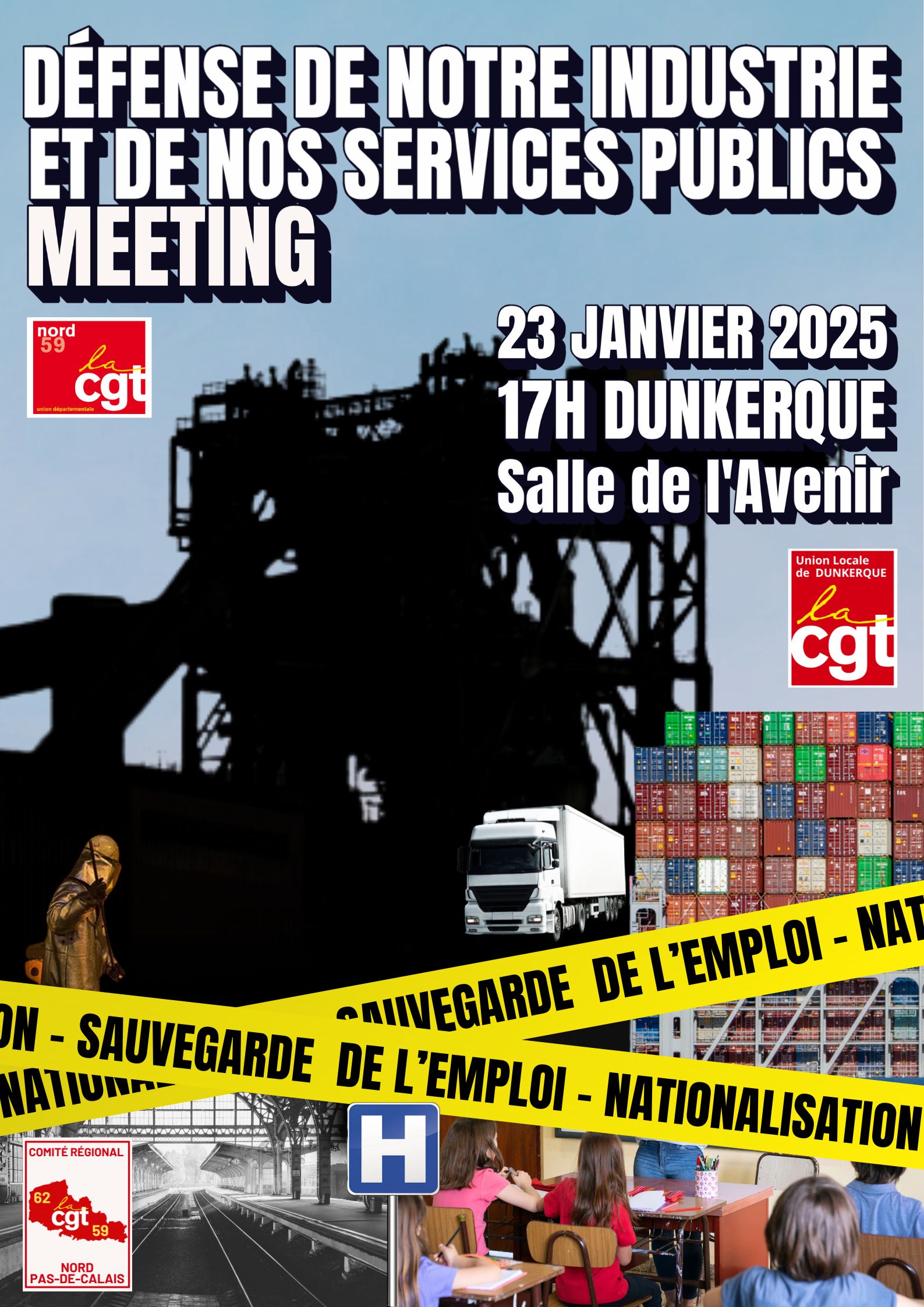 Les syndicats du Nord, réunis en comité général le 13 décembre 2024 à Aulnoye-Aymeries ont décidé d’engager sans plus attendre ce combat en appelant dans un premier temps à un grand meeting à Dunkerque autour de la Sidérurgie le 23 janvier 2025 qui fera suite à la convocation de la direction d’Arcelor-Mittal par la commission économique de l’Assemblée nationale.